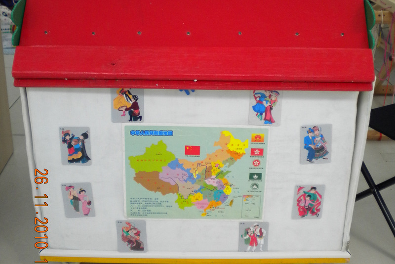 《百变游乐屋》是一个多功能建构类自制玩教具,适合3—6岁幼儿游戏。针对现在幼儿园孩子多、空间小的特点。我们设计制作了这个融趣味性、知识性、科学性、创造性、耐用性、安全性于一体的建构型木制玩教具,它是一个长65cm、宽75cm、高75cm的红顶白墙多层小木屋,可以同时提供20名左右幼儿进行建构、绘画、数学、阅读、手工、体育等游戏活动。