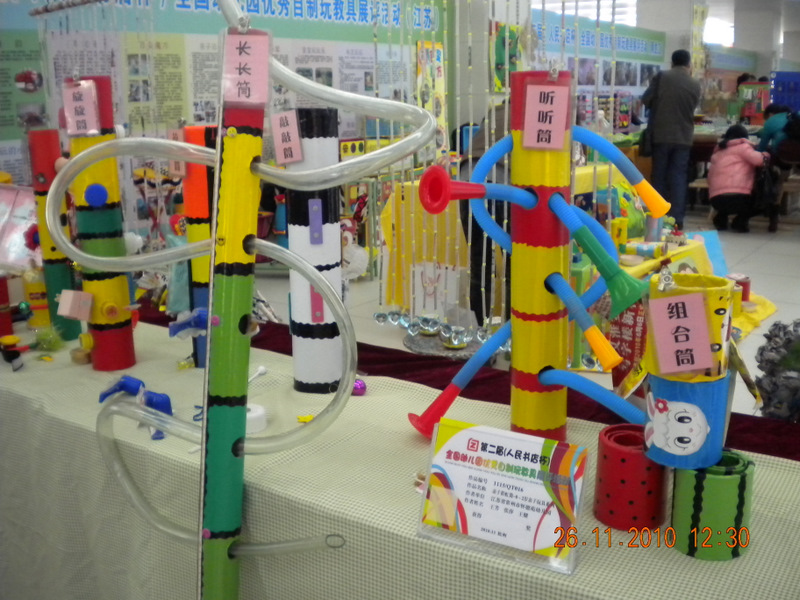 亲子彩虹筒是为8-24个月的宝宝设计的亲子玩具,共有八个粗细各异的筒组成。 一、塞塞筒:抓片片塞入筒上直、斜线小口子。再摇一摇听一哌,片片落进三个筒的不同声音。筒上的小圆洞。可以塞入小豆。 二、玩具筒:将不同粗细的吸管玩具对准、插入不同粗细的洞洞中。磁铁玩具则对准磁铁标记吸在筒上。 三、拉拉筒:来回拉动筒上的拉链玩,探索拉链向不同方向的拉力。 四、旋旋铜:旋开筒上镶嵌的各种大小瓶盖和盒子。旁边的弹力玩具,塞入洞中,感知物体的隐藏。 五、长长筒:玩法1:长长筒可以给宝宝量身高,奶粉勺是标尺。 玩法2:“洞洞游戏”;柱子上面对面挖空的洞玩亲子“捉手指”游戏。一侧挖空的洞洞玩“抠洞洞”,抠洞洞里不同材料。 玩法3:“什么出来了?”用3米长的透明塑料管串在筒上呈S型。管子上端塞入豆豆,爸爸吹豆豆,宝宝接豆豆。 六、敲敲筒:敲打筒上的音阶片。听发出什么声音。 七、听听筒:有对三听筒,宝宝观察妈妈在哪个筒说话。找到和妈妈一样的筒来听,也可以反过来宝宝说,妈妈听。 八、组合筒:玩法1“叠叠高”:将四个一样大的筒练习叠高。 玩法2“滚来滚去”:亲子互动滚或宝宝独立滚;将小筒滚到任意地方,并追赶滚筒。 玩法3“套套筒”:套入,取出三个大小不一的筒。 |