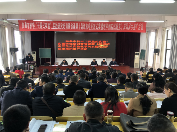 为进一步深化初中实验学科课堂改革,促进学校开全开足开好实验课程,加强对“开放式实验”教学的研究和实践,培养师生创新能力,促进教育教学质量的提升,11月11日,如皋市初中“开放式实验”实践研究培训暨省课题《县域初中开放式实验教学的实践研究》成果展示推广活动在白蒲镇初级中学举行,来自全市初中的物理、化学、生物学科教研组长和部分骨干教师以及各镇教育管理中心分管初中教学校长、各定点初中分管教学副校长近200人参加了本次活动。如皋市教育局副局长丁非、如皋教师发展中心相关人员参加了活动。