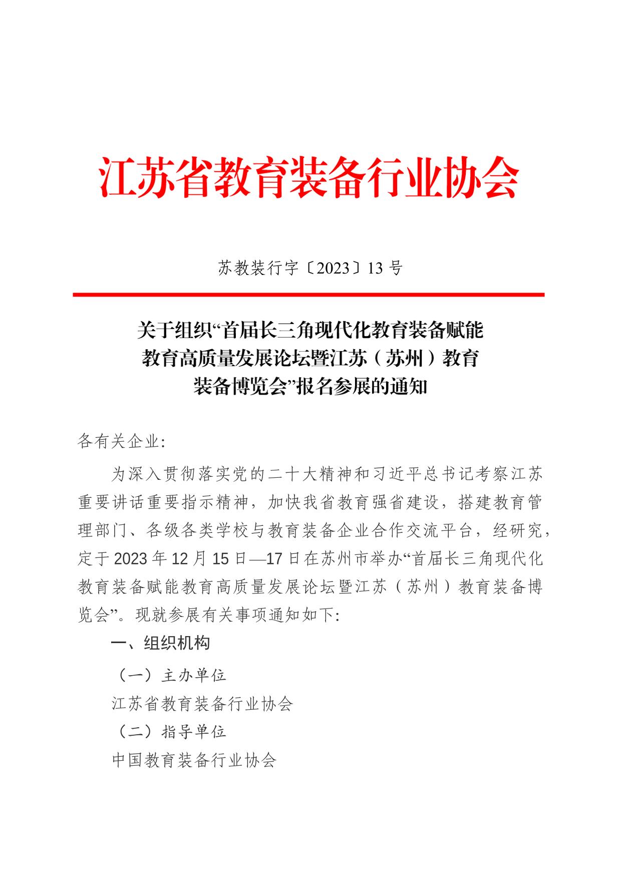 关于组织“首届长三角现代化教育装备赋能教育高质量发展论坛暨江苏(苏州)教育装备博览会”报名参展的通知